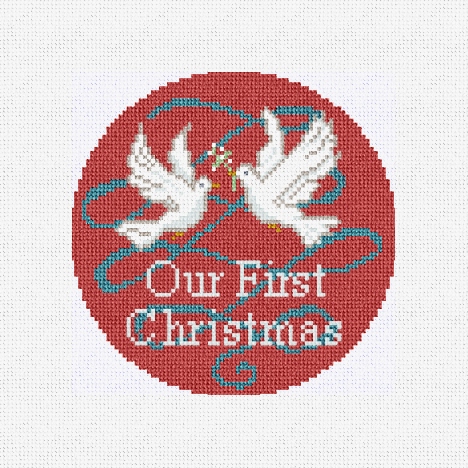 Celebrating the first Christmas together as a married couple is very special! These doves represent hope and peace, devotion and faith. We have designed this needlepoint ornament canvas to incorporate all of these symbols, creating a beautiful heartfelt gift that you can stitch for the bride and groom's first holiday tree. Include this ornament with the couple's wedding gift as a package topper. (DMC embroidery floss is optional, does not include finishing materials)