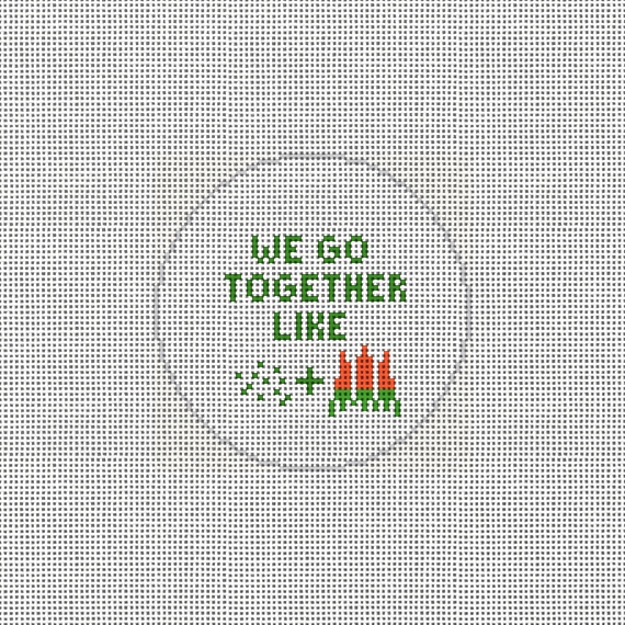 Peas and carrots! You can't have one without the other -- the perfect pair, better together. Stitch a needlepoint message of love this Valentine's Day for the other half who makes your heart whole. (DMC embroidery floss is optional, does not include finishing materials)