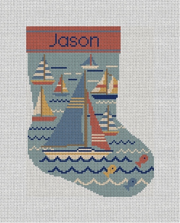 Seas and greetings! This merry maritime mini stocking sails into the season with striped sails, friendly fish, sparkling waters, and a salty splash of holiday fun. Good times, laughter and plenty of cheer, the holidays are extra fun when good friends are near. Needlepoint, decorate, celebrate, repeat. (DMC embroidery floss optional, does not include finishing materials.)