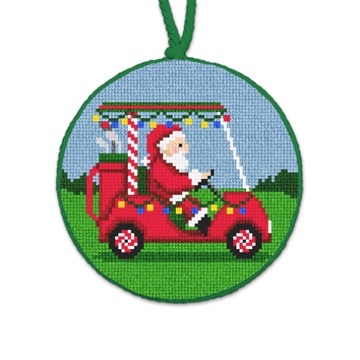 Dashing through the greens, Santa's taking a holiday detour -- next stop: the 19th hole! Good times, laughter and plenty of cheer, the holidays are extra fun when good friends are near. Needlepoint, decorate, celebrate, repeat! (DMC embroidery floss is optional, does not include finishing materials)