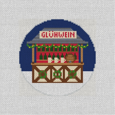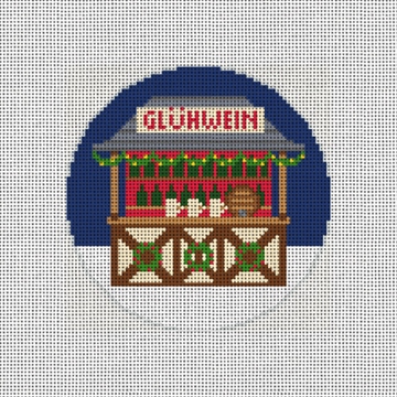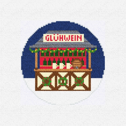 Glüwein -- spiced wine! From cobbled streets to stars that shine, cheers to love and festive wine. Wreaths, treats, and handmade art -- German Christmas markets warm the heart. Stitch the spirit of Christmas as it glows in each needlepoint ornament design. (DMC embroidery floss is optional, does not include finishing materials)