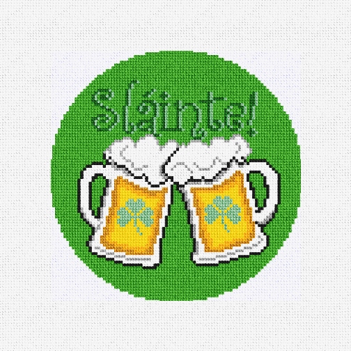 Stitch, raise a toast and "get your green on" this St. Patrick's day with one of our festive needlepoint designs. (DMC embroidery floss is optional, does not include backing or edging)