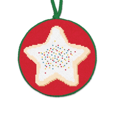Golden and bright, a cookie star light, frosted with magic, a Christmas delight! Needlepoint holiday treats -- oh so sweet! (DMC embroidery floss optional, does not include finishing materials)