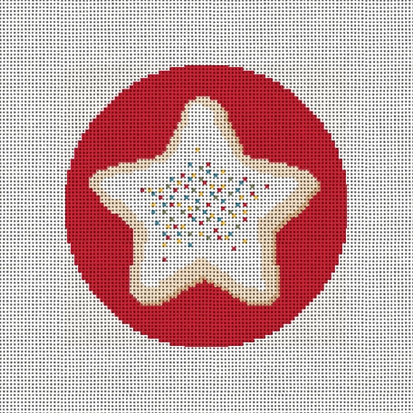 Golden and bright, a cookie star light, frosted with magic, a Christmas delight! Needlepoint holiday treats -- oh so sweet! (DMC embroidery floss optional, does not include finishing materials)