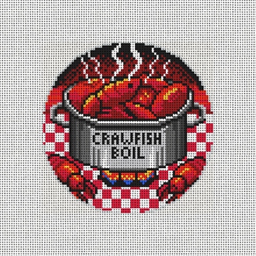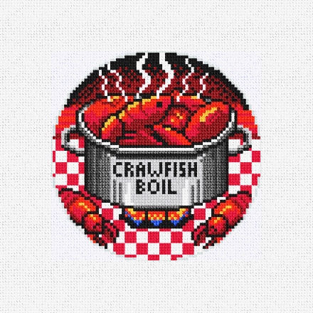 Smokin' hot! A messy, lively, delicious tradition where every handful is an incredible taste sensation. Peel, eat, repeat and stitch this ornament or coaster in celebration of a never ending cycle of good food, great friends, and even better memories. (DMC embroidery floss optional, does not include finishing materials.)