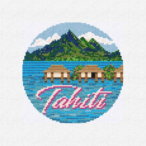 Celebrated for its unparalleled natural beauty, rich cultural heritage and its status as a luxurious and romantic destination, Tahiti is the largest island in French Polynesia. This ornament canvas design features: the exotic and luxurious overwater bungalows built on stilts over the water. Bring your favorite travel adventures to life -- one stitch at a time! (DMC embroidery floss is optional, does not include finishing materials)