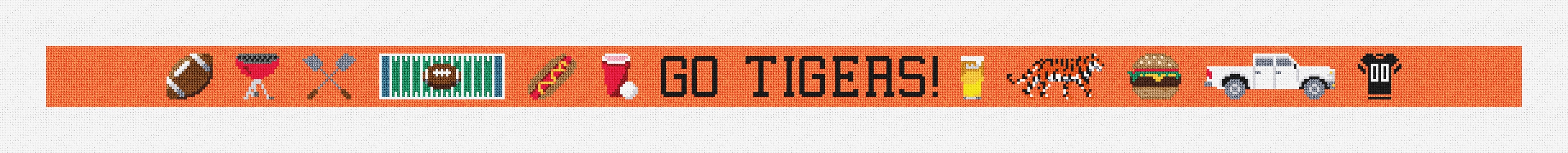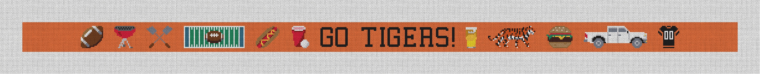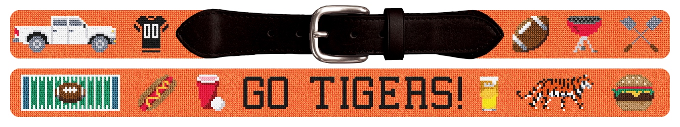 Chasing touchdowns, catching compliments! Stitch style points with this belt design that's as ready for tailgate fun as you are. Fully personalizable, this needlepoint belt design allows a customer to change the background color, add a monogram, and other icons. (DMC embroidery floss is optional, does not include finishing materials.)