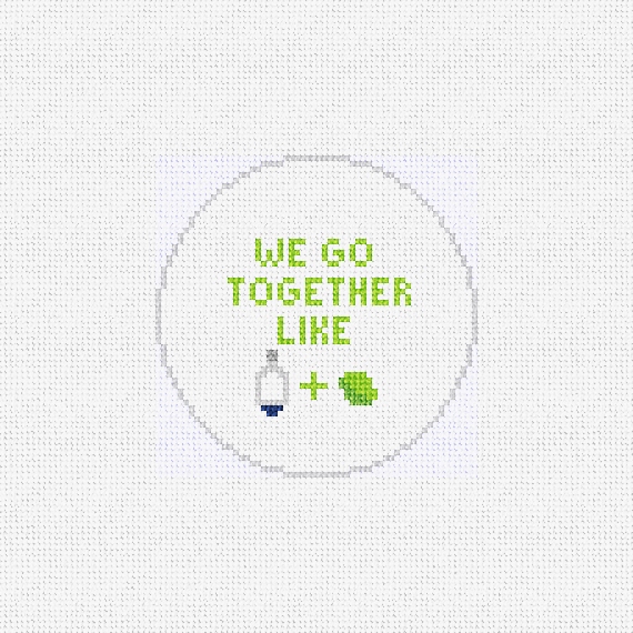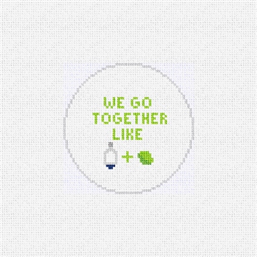 Tequila and lime! You can't have one without the other -- the perfect pair, better together. Stitch a needlepoint message of love this Valentine's Day for the other half who makes your heart whole. (DMC embroidery floss is optional, does not include finishing materials)