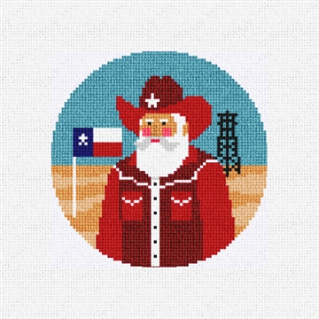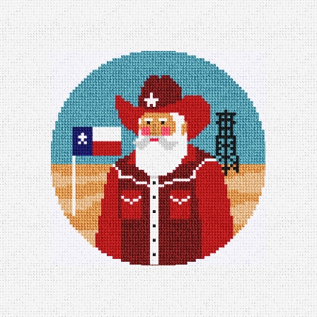Santa's found a new red hat to his liking in this big friendly place, none other than Texas the Lone Star State! Stitch and add a heartwarming blend of holiday magic and a bit of Texas adventure to your holiday decor with this fun needlepoint ornament kit. (DMC embroidery floss is optional, does not include finishing materials)