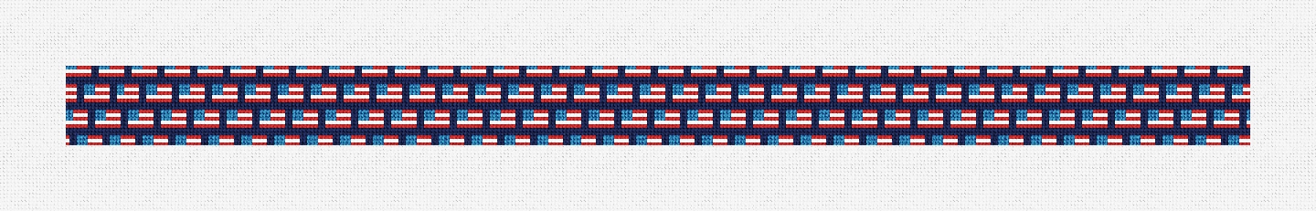 Mesh Count: 18 per inch Canvas Size: 20 x 3.22 inches Print Size: 18 x 1.22 inches Thread Type: DMC Embroidery Floss Thread Color Count: 4