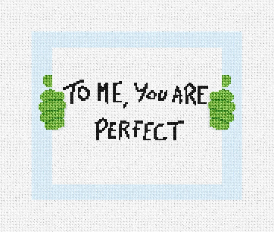 Warm mittens and an even warmer heart, hold a cozy Christmas confession! Stitch this pillow design and wrap your space in holiday glow and the sweetest words of all: "To me you are perfect." (DMC embroidery floss is optional, does not include finishing materials.)