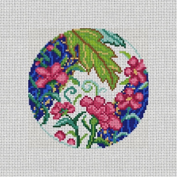 Graceful nostalgic blooming elegance! From our needlepoint collection inspired by the colorful miracle of nature's elegant tobacco leaf -- with fresh and timely floral glam. This holiday add some delicate flora to the festivities. (DMC embroidery floss is optional, does not include finishing materials)