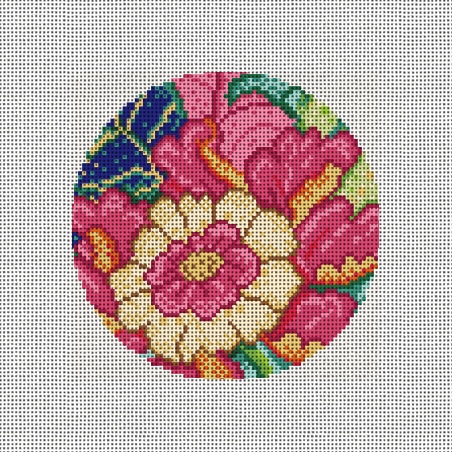 Regal blooms dance with nostalgic elegance! From our needlepoint collection inspired by the colorful miracle of nature's elegant tobacco leaf -- with fresh and timely floral glam. This holiday add some delicate flora to the festivities. (DMC embroidery floss is optional, does not include finishing materials)
