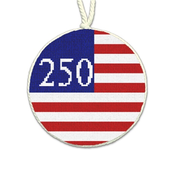 Freedom in every stitch! From our sparkling red, white, and blue, needlepoint ornament collection honoring 250 years of American spirit, pride and timeless tradition. Stitch on! (DMC embroidery floss optional, does not include finishing materials)