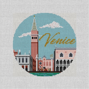 When you gather around the tree this holiday season, enjoy the ornaments that you have stitched reflecting the travels your family has experienced together! This Venice Christmas ornament canvas includes: a waterfront view with Doge's Palace, St. Mark's Campanile, and St. Mark's Square. (DMC embroidery floss is optional, does not include finishing materials) Check out our blog post with more travel destination ideas: https://www.needlepaint.com/blog/2020/09/15/travel-round-needlepoint-ornament/If you would like our designers to create a custom travel ornament especially for you, go to: https://www.needlepaint.com/needlepoint-kits/custom-vacation-needlepoint-ornament-canvas-1384