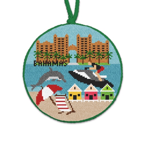 Needlepoint is a labor-intensive craft that requires patience and precision. It requires careful attention to detail, as the stitches are tightly packed and the colors are meticulously chosen to create your one-of-a-kind family heirloom.Our ornaments are custom made using cotton thread on the front and velvet on the back. The trim and loop are a cotton and synthetic blend.Since we create only the finest quality needlepoint products, we offer a 100% satisfaction guarantee on the stitching and quality of our work. For this reason, we ask that you take your time when reviewing and approving your design. Remember that it will take us about 8 - 12 weeks to stitch and finish your needlepoint ornament.