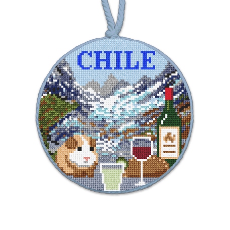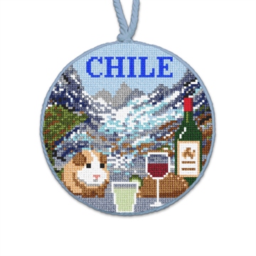A country of breathtaking diverse landscapes, Chile is home to the Atacama Desert, the fertile Central Valley, the rugged coastline of the Pacific ocean and the pristine wilderness of Patagonia. This ornament canvas design features: the Andes/glacier, guinea pig, maté, wine, empanada, and a pisco sour cocktail. When you gather around the tree this holiday season, enjoy the ornaments that reflect the travels your family has experienced together!