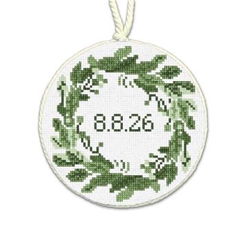Always elegant and simplistic! Wreaths and rings have many common symbolisms: strength, eternity and the never ending love between a couple. A beautiful gift to give to the bride and groom to adorn their holiday tree. Please feel free to personalize this design with a wedding date.