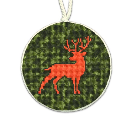 Rugged and ready for the woods, this camouflage hunting themed needlepoint ornament celebrates the quiet thrill of the hunt and the timeless traditions of the great outdoors. The perfect ornament for the hunting enthusiast in your family!