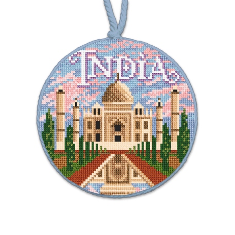 India's blend of ancient traditions and modern innovations, combined with its vast cultural and geographic diversity, makes it one of the most fascinating and influential countries in the world. This ornament design features the Taj Mahal. Bring your favorite travel adventures to life -- with a beautifully crafted needlepoint ornament!