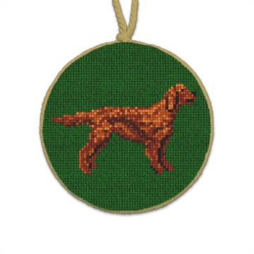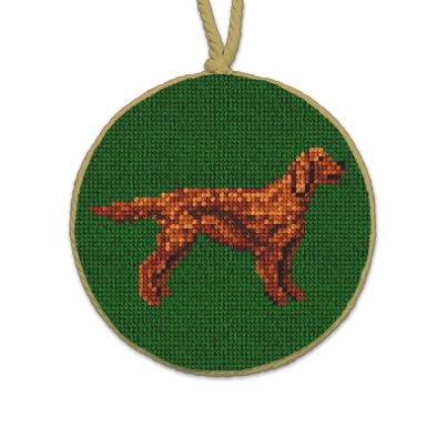 Your Irish Setter is a rambunctious red head with a big heart! Always ready to join in on any adventure -- no need to leave this sweet dog at home. Cuddle with this family member as you gather around the holiday tree; and together enjoy the beautifully crafted needlepoint ornament.