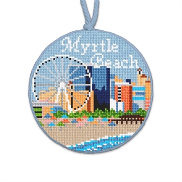 Featuring miles of sandy shores along the South Carolina eastern coast, you will find the vibrant coastal city of Myrtle Beach. This needlepoint ornament design features the beach, skyline, boardwalk and Sky Wheel. When you gather around the tree this holiday season, enjoy the ornaments that reflect the travels your family has experienced together!