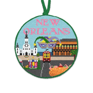 The Big Easy! When you gather around the tree this holiday season, enjoy the ornaments that reflect the travels your family has experienced together. Our New Orleans ornament includes images of: St. Louis Cathedral, the French Quarter, Mardi Gras mask and float, po' boy sandwich and a street car.