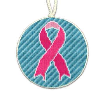 This pink ribbon needlepoint ornament shines brightly symbolizing the brave journey of patients and survivors. Carefully stitched and crafted honoring the strength and spirit of all touched by breast cancer. We will donate a portion of the proceeds to Living Beyond Breast Cancer.