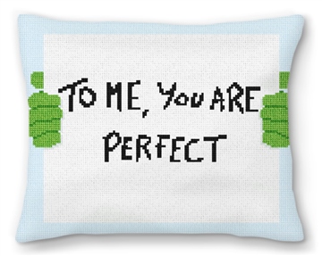 Warm mittens and an even warmer heart, hold a cozy Christmas confession! This needlepoint pillow design wraps your space in holiday glow and the sweetest words of all: "To me you are perfect."