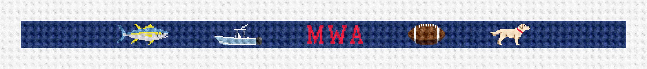 Mesh Count: 18 per inch Canvas Size: 31 x 3.33 inches Print Size: 29 x 1.33 inches Thread Type: DMC Embroidery Floss Thread Color Count: 16