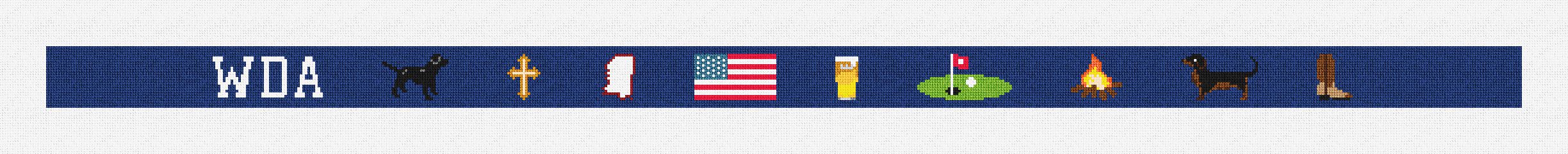 Mesh Count: 18 per inch Canvas Size: 34 x 3.33 inches Print Size: 32 x 1.33 inches Thread Type: DMC Embroidery Floss Thread Color Count: 19